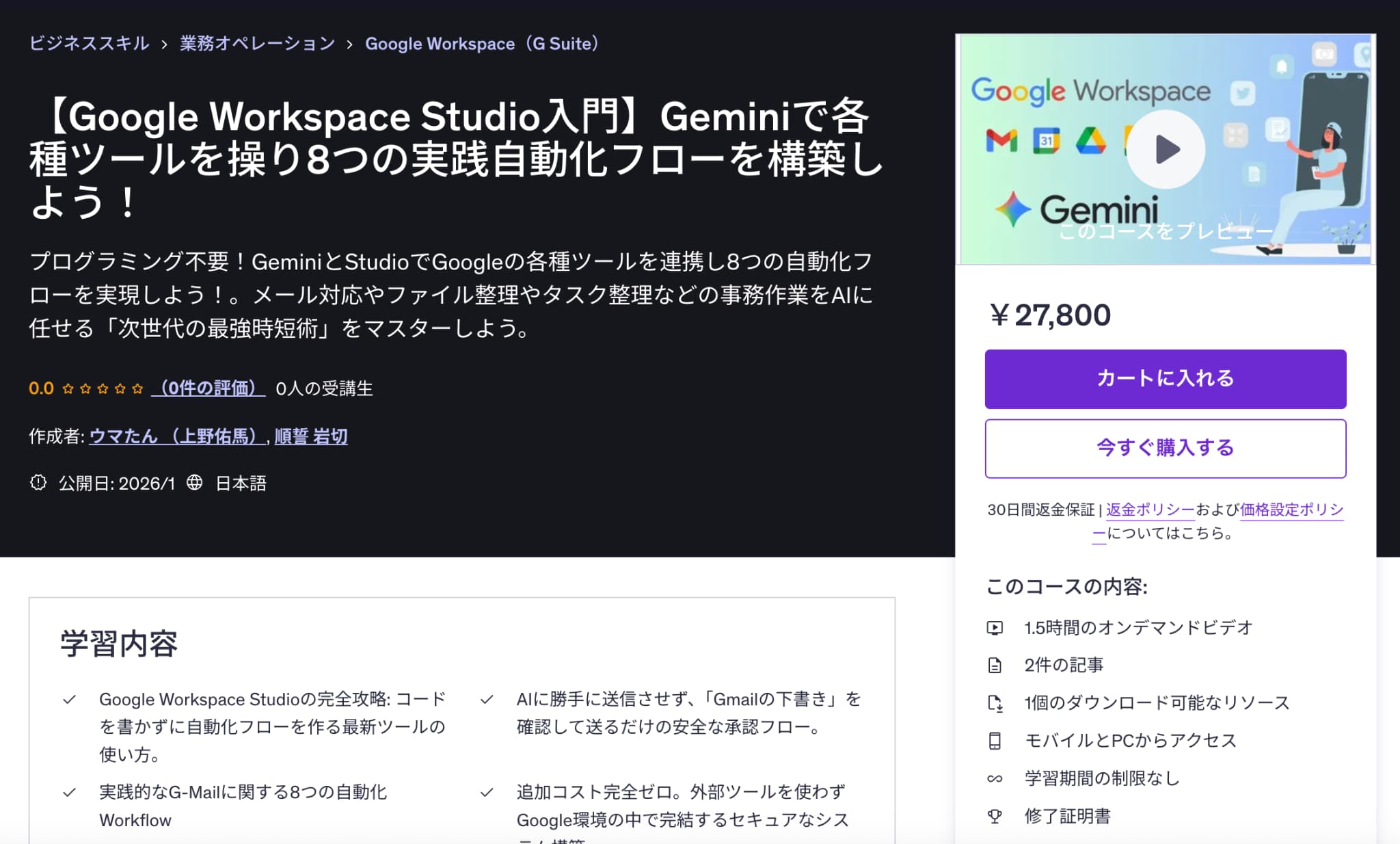 Google Workspace StudioでGoogleツールの自動化ワークフローを作るを学ぶならこのコース!