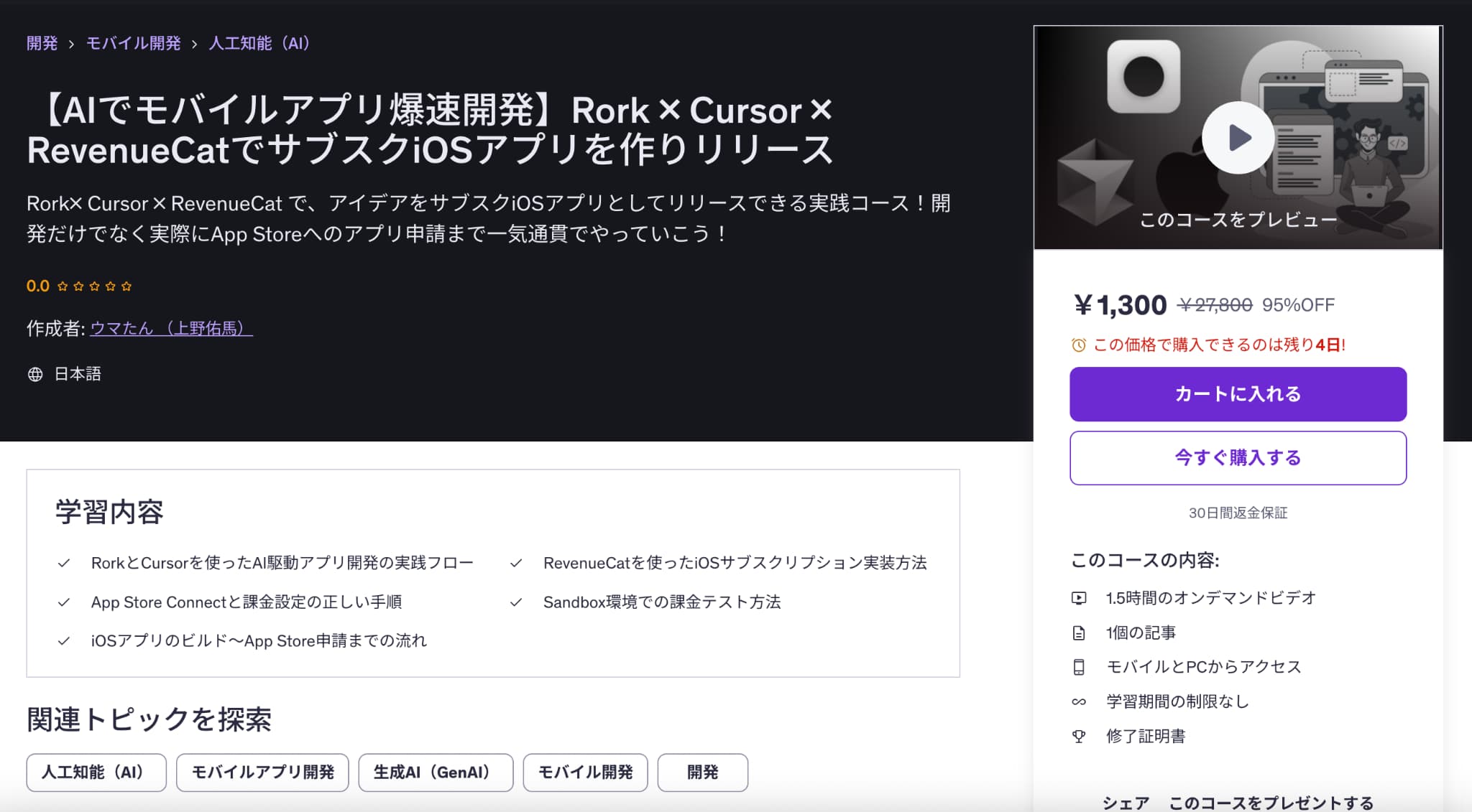 - 【AIでモバイルアプリ爆速開発】Rork × Cursor × RevenueCatでサブスクiOSアプリを作りリリース